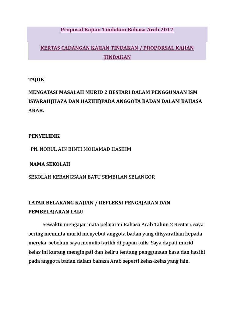 Proposal Kajian Tindakan Penggunaan Isim Isyarah Pdf