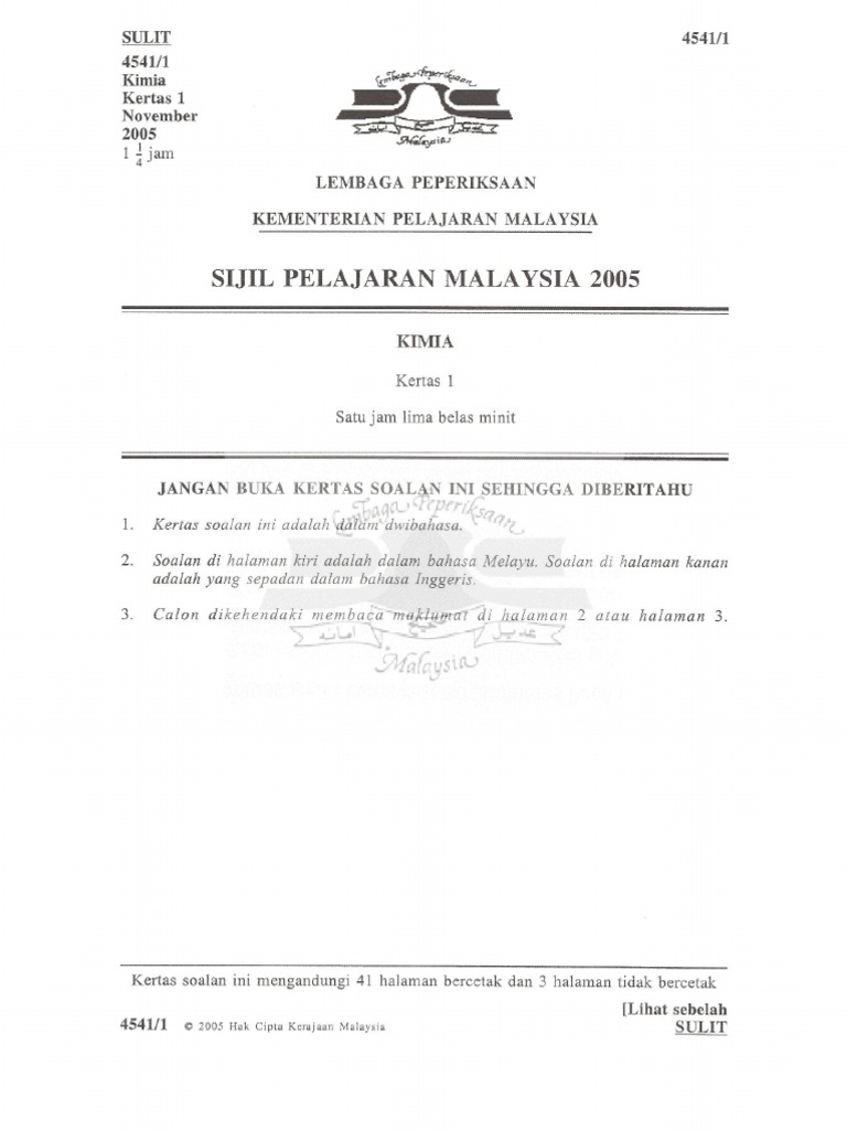Soalan Sebenar Kimia Sijil Pelajaran Malaysia Spm 2019